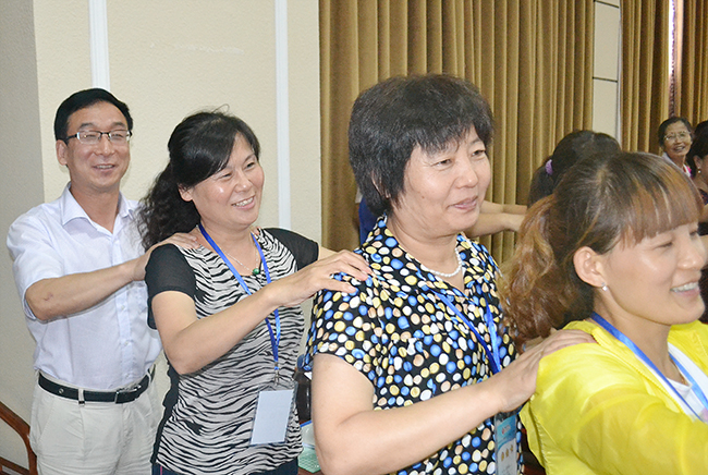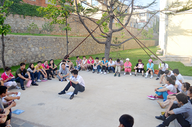 參訓(xùn)人員席地而坐,討論工作中存在的問題