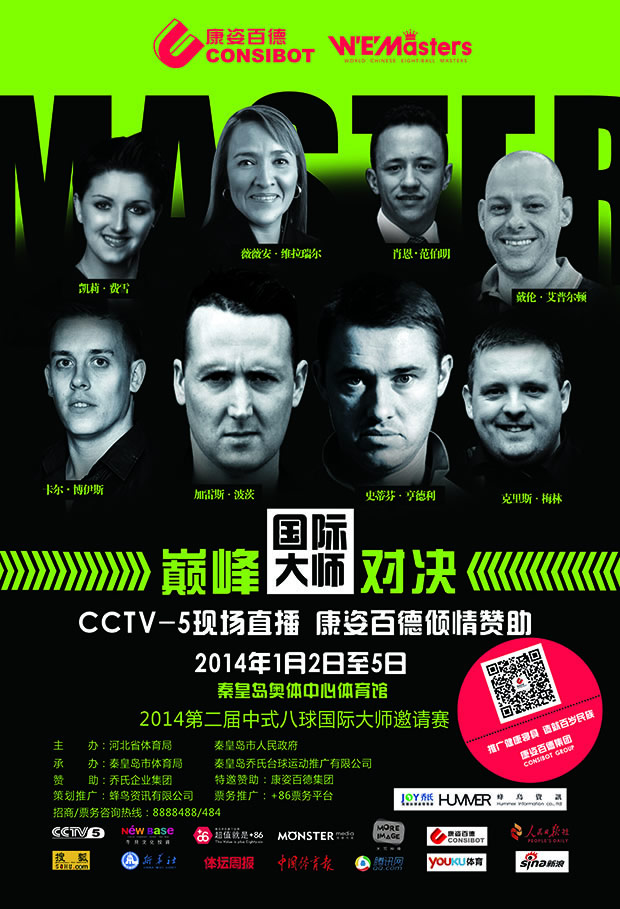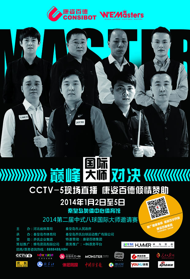 由河北省體育局、秦皇島市人民政府主辦,我公司傾情贊助的中國(guó)·秦皇島“喬氏杯”第二屆中式八球國(guó)際大師邀請(qǐng)賽,將于2014年1月2日至5日在秦皇島奧體中心舉行。屆時(shí),“臺(tái)球皇帝”亨德利等8名國(guó)際臺(tái)球大師將與8名國(guó)內(nèi)中式八球頂尖高手進(jìn)行“中外對(duì)抗”,為觀眾帶來(lái)一次盛會(huì)。