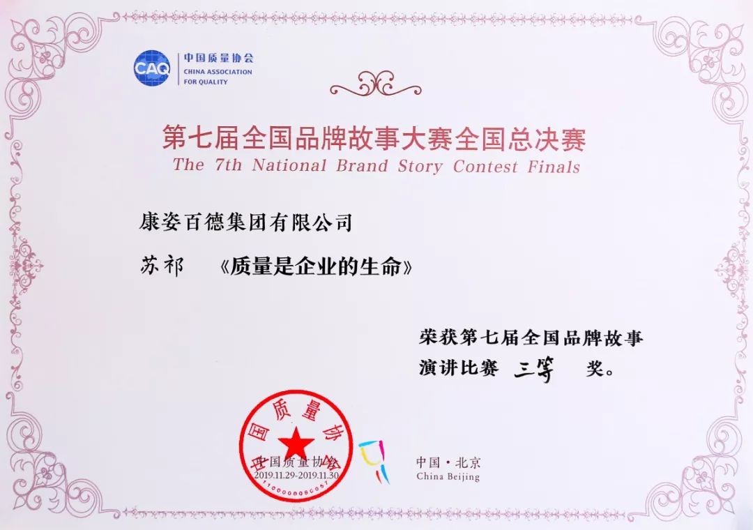 品牌是企業(yè)競(jìng)爭(zhēng)力的標(biāo)志,質(zhì)量是企業(yè)品牌聲譽(yù),也是迎接企業(yè)發(fā)展、面臨挑戰(zhàn)的關(guān)鍵因素。滿載著全國(guó)品牌故事大賽的榮譽(yù),我們將更加堅(jiān)定、更加專業(yè)化地做好品牌升級(jí),讓“康姿百德”品牌與世界共享,所有康姿百德人也將助力康姿百德推進(jìn)品牌建設(shè),持續(xù)打造中國(guó)品牌核心競(jìng)爭(zhēng)力,再創(chuàng)中國(guó)制造品牌享譽(yù)世界的新輝煌!