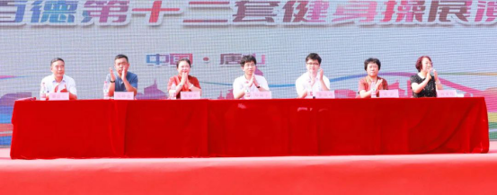 康姿百德集團(tuán)銷售公司副總監(jiān) 畢樹豐,康姿百德集團(tuán)有限公司品牌管理中心總監(jiān) 李紹鳴,康姿百德唐山地區(qū)總經(jīng)理 張麗君,康姿百德張家口地區(qū)總經(jīng)理 安峰逸,康姿百德赤峰地區(qū)總經(jīng)理 沈巖,康姿百德錦州地區(qū)經(jīng)理 郝清元,康姿百德包頭地區(qū)經(jīng)理 石榮枝共同出席了本次健身操展演活動(dòng)。