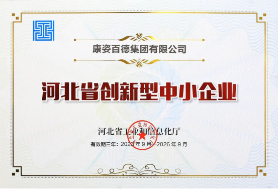 康姿百德被評為“河北省創(chuàng)新型中小企業(yè)”