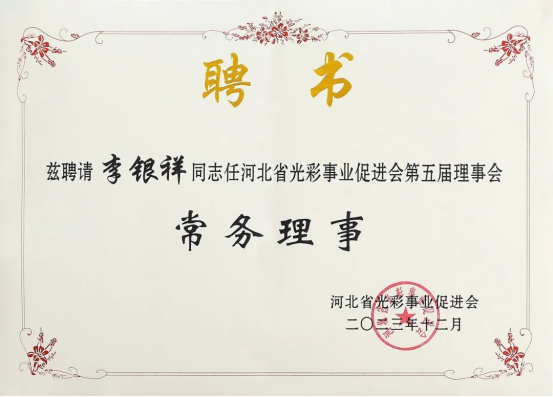 12月13日,河北省光彩事業(yè)促進(jìn)會第五次會員代表大會暨五屆一次理事會議在石家莊成功召開。李銀祥董事長當(dāng)選為“河北省光彩事業(yè)促進(jìn)會第五屆理事會常務(wù)理事”。