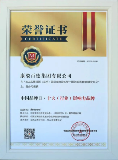 康姿百德集團(tuán)榮獲“十大(行業(yè))影響力品牌”稱號
