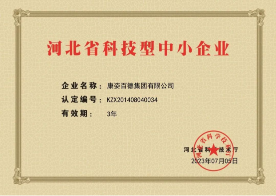康姿百德連續(xù)13年被評為“河北省科技型中小企業(yè)”